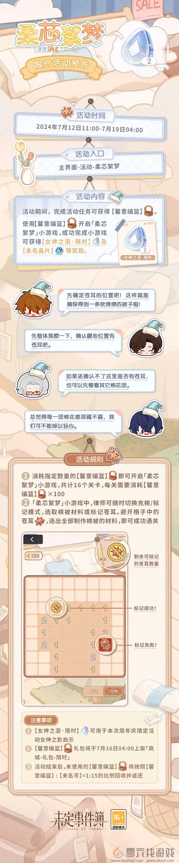 7月12日,未定事件簿将推出全新的小游戏活动“柔芯絮梦”,这次的活动是扫雷小游戏。未定事件簿柔芯絮梦...